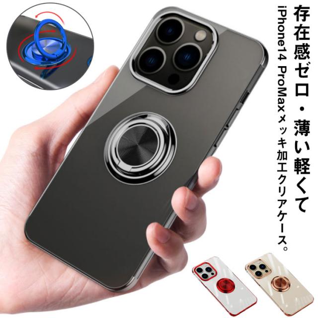 リング付きクリアケース iphone14 ケース クリア 送料無料 iPhone14 plusケース リング付き スタンド機能 iphone14 Pro Max ケース メッキ加工 透明 スマホケース TPU ソフト 柔らかい スマートフォンカバー お洒落 可愛い 大人女子
