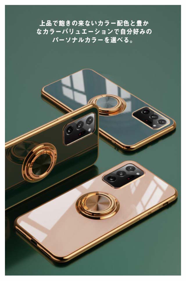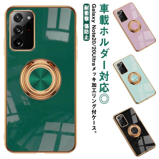 スマホケース Note20 ケース リング付 送料無料 Note20Ultra リングケース カバー メッキ加工 ソフト TPU Galaxy Note10 携帯ケース カメラ保護 耐衝撃 傷防止 スタンド機能 バンカーリング 落下防止 シンプル かわいい おしゃれ 韓国風