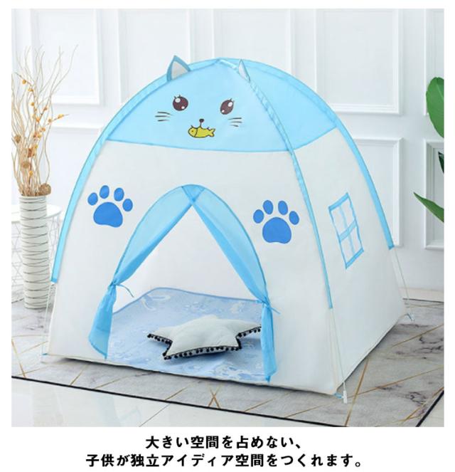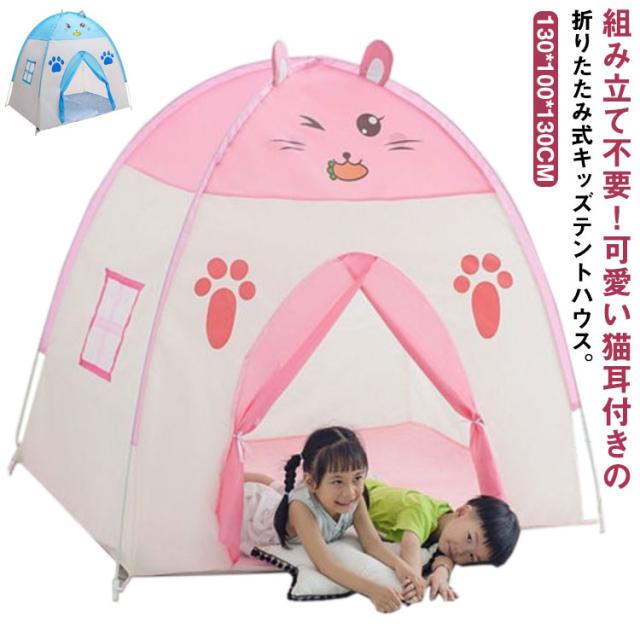 キッズテント テントハウス 完成品 室内 屋外 収納袋付き 子供テント プレイハウス 折りたたみ式 持ち運び 秘密基地 お城 プレイテント 女の子 男の子 ままごと 猫耳付き 小さめ 庭 アウトドア 七五三 誕生日 1歳 2歳 3歳