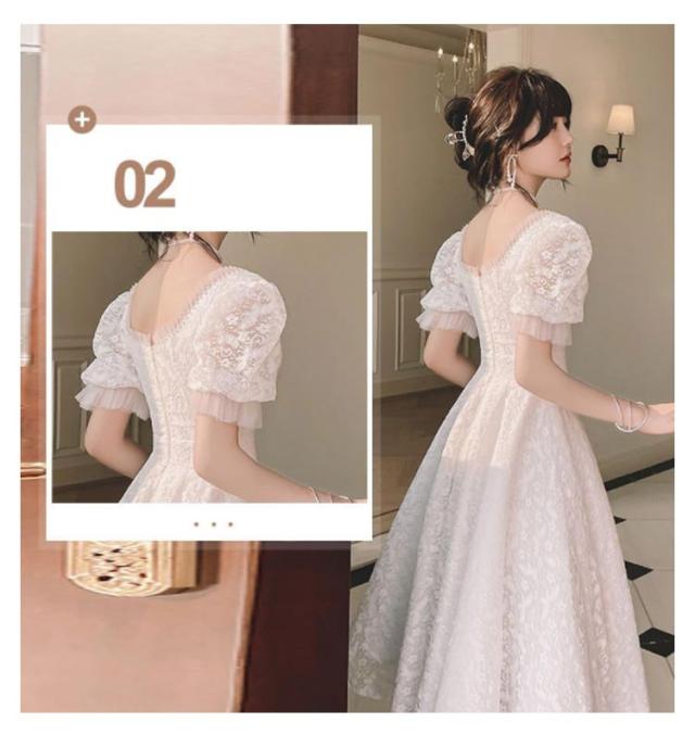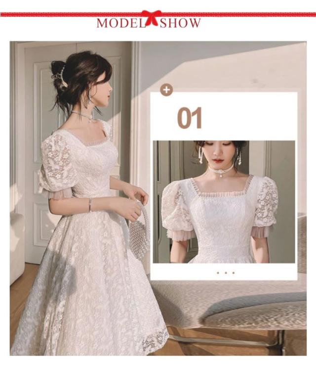 XS-4XL! ワンピース 総レース パーティードレス 結婚式 ドレス スクエアネック ミモレ丈 半袖 ボリューム袖 フレアワンピース aラインワンピース 立体的 白 ホワイト エレガント 奢華 発表会 披露宴 謝恩会 お呼ばれ【送料無料】