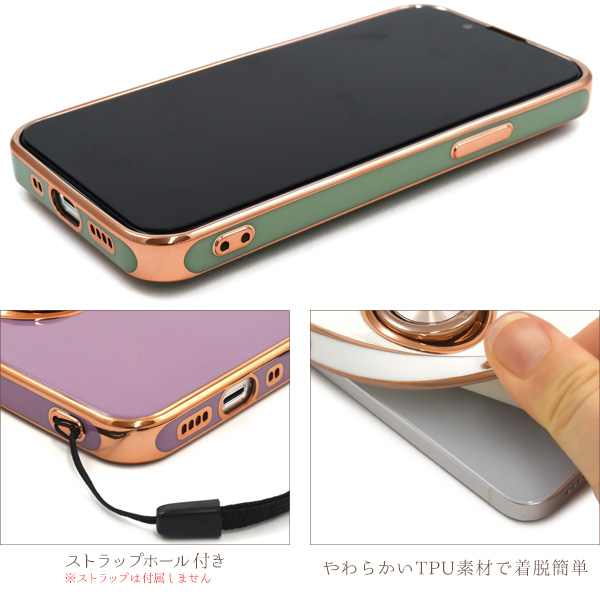 スマホケース iPhone13mini スマホリング付き ソフトケース メタリックバンパー 装着簡単 背面保護 おしゃれ メタリックカラー 携帯ケース iPhoneケース 携帯カバー お洒落 韓国っぽ 韓国風 スマホカバー シンプル カジュアル 上品 バックカバー SoftBank au docomo