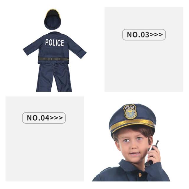 | 子供警官衣装。7点セット内容:トップス+パンツ+帽子+銃器のサック+手錠+ホイッスル+インターホン。完全なりきり警官セットで夢を叶えてあげましょう! 肌に優しくて、高透気性のコスチュームです。 ハロウィンやクリスマスなどパーティーや、忘年会にぴったりです。 イベントを盛り上げるコスプレアイテムとして、パーティーをより楽しく演出です。 ハロウィン、仮装パーティー、クリスマスパーティー、忘年会、文化祭、舞踏会など、様々な場面で活躍できますように。 | |