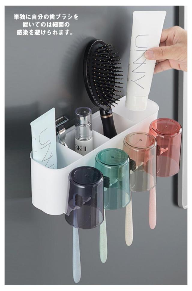 穴開け不要・収納便利! 歯ブラシ 歯磨き 歯ブラシスタンド 歯ブラシホルダー カップル 殺菌 除菌 ペア 独身 乾燥 壁掛け式 壁掛け コップ カビ防止 夫婦 収納 ホルダー ケース 穴開け不要 1人用-4人用 コンパクト 粘着式 一人暮らし お風呂 洗面所