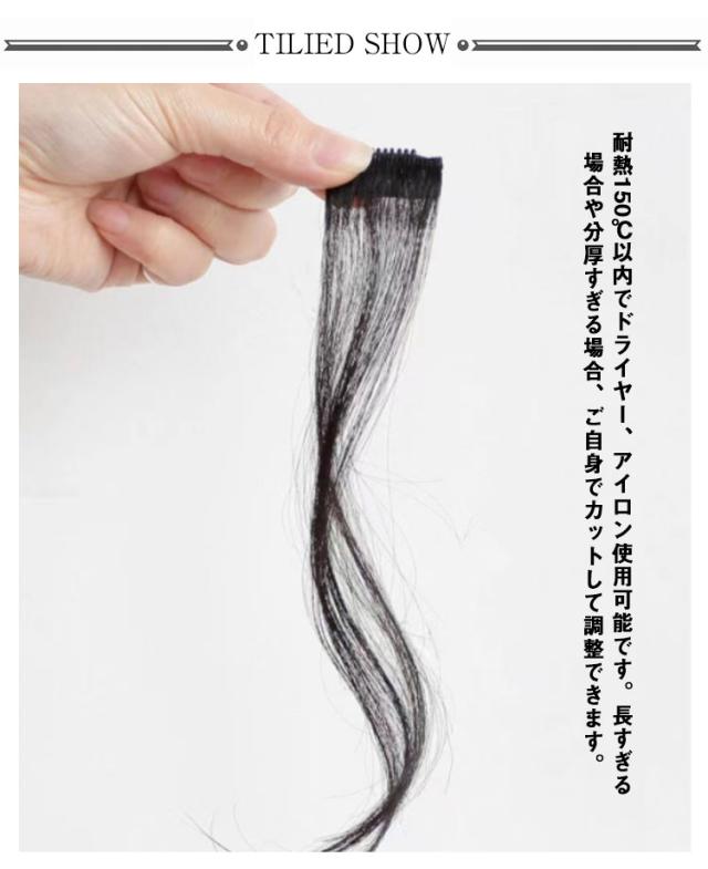 | 全部良質なファイバーを厳選使用! 最高級ファイバーを使用して職人による手植え結び目がしっかりで抜けにくくて長持ちできます。 ちょっとした光の反射も自然に見え、ウィッグ特有のテカリがなく、人毛に近いしっとりとした自然な手触りです。 部分ウイッグの中でも特に繊細な仕上がりで、地毛とよく馴染ませやすい 耐熱150℃以内でドライヤー、アイロン使用可能です。長すぎる場合や分厚すぎる場合、ご自身でカットして調整できます。 通勤、通学、旅行、夜のデートやお出かけなどにお勧めます。 全部良質なファイバーを厳選使用して触り心地が自然で違和感なく、薄くてナチュラルで地毛とよく馴染みます。 | |
