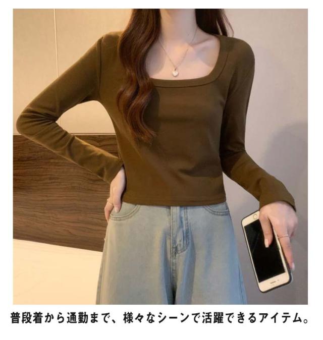 長袖カットソー レディース カットソー ニット 長袖 無地 トップス インナー 無地カットソー 綿 カットソー Tシャツ インナートップス ロンT 無地 コットン 大きいサイズ カジュアル 体型カバー