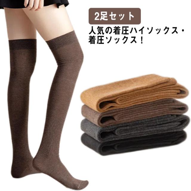 [着圧2足セット] ハイソックス ニーハイソックス レディース 靴下 秋冬 着圧 ソックス 厚手 防寒 着圧ソックス 無地 美脚 ニーハイ 着圧靴下 着圧ハイソックス 白 黒 オーバーニー オーバーニーソックス 暖かい 保温 あったか ブラック ホワイト