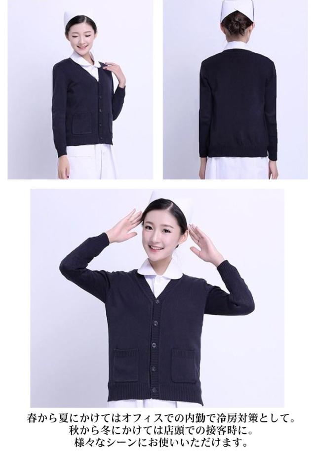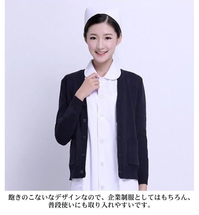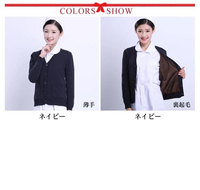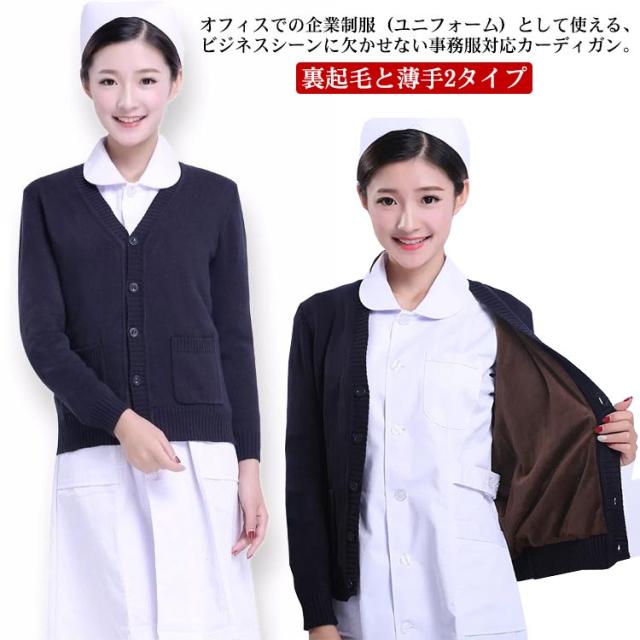 【送料無料】ニット カーディガン 事務服 制服 裏起毛と薄手2タイプ レディース 秋冬 ビジネス オフィス 通勤 Vネック 羽織り 接客 秋服 通学 学校 制服 中学生 高校生 女子 長袖 スリム 春 ポケット付き ネイビー 紺