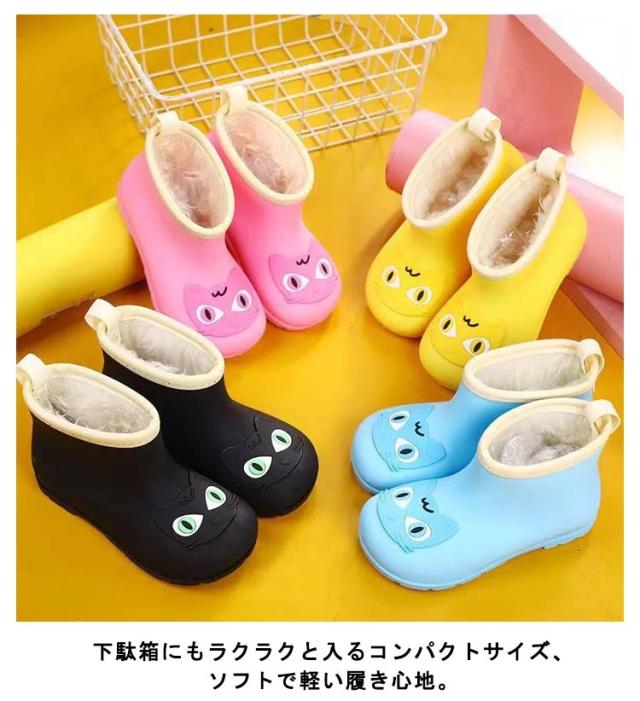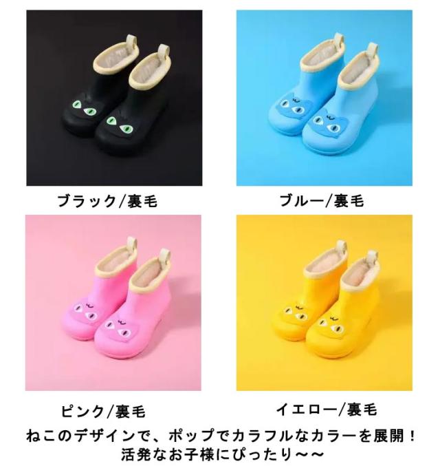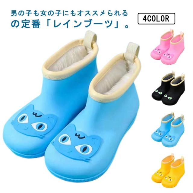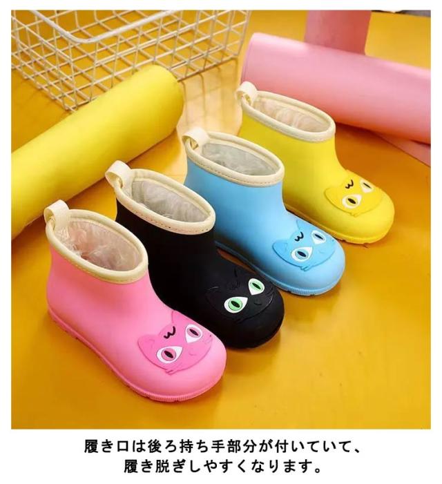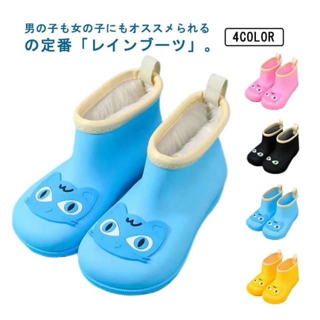 レインブーツ キッズ レインシューズ 雨靴 子供靴 長靴 ながぐつ ねこ アニマル 動物 猫 男の子 女の子 アウトドア キャンプ ショート丈 裏毛 防水 滑り止め 通学 梅雨対策 雨靴 軽量 ジュニア レインシューズ カラフル 痛くない 楽ちん