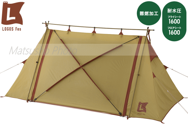 キャンプをはじめたい方や野外フェスにぴったりなLOGOS Fesシリーズ。クラシカルなA型フレームを採用しPANEL SYSTEM搭載など機能性も充実した2人用テント。インナーテントはテント内に熱がこもらないフルメッシュ仕様で日差しや紫外線をやわらげるデビルブロックSTを採用しているため快適に過ごす事ができます。インナーテント左右には小さな窓があるためテント室内から荷物の出し入れすることが可能です。インナーは吊り下げ式で簡単に取り外しができるためタープとして単独使用が可能です。持ち運びに便利な専用の収納バッグ付き。■総重量約9.6kg■サイズ約全長375×幅260×高さ160cm(正面入口高さ140cm)■収納サイズ約縦23×横60×高さ23cm■耐水圧[フライシート]1600mm[フロアシート]1600mm■構成:フライシート、インナーテント 、屋根フレーム、脚フレーム、パネルフレーム、キャノピーポール、ロープ、収納バッグ、フレーム用収納袋、ペグ、ハンマー、小物袋■難燃加工:米国基準CPAI-84適合※耐水圧は摩擦や経年劣化とともに低下していきます。