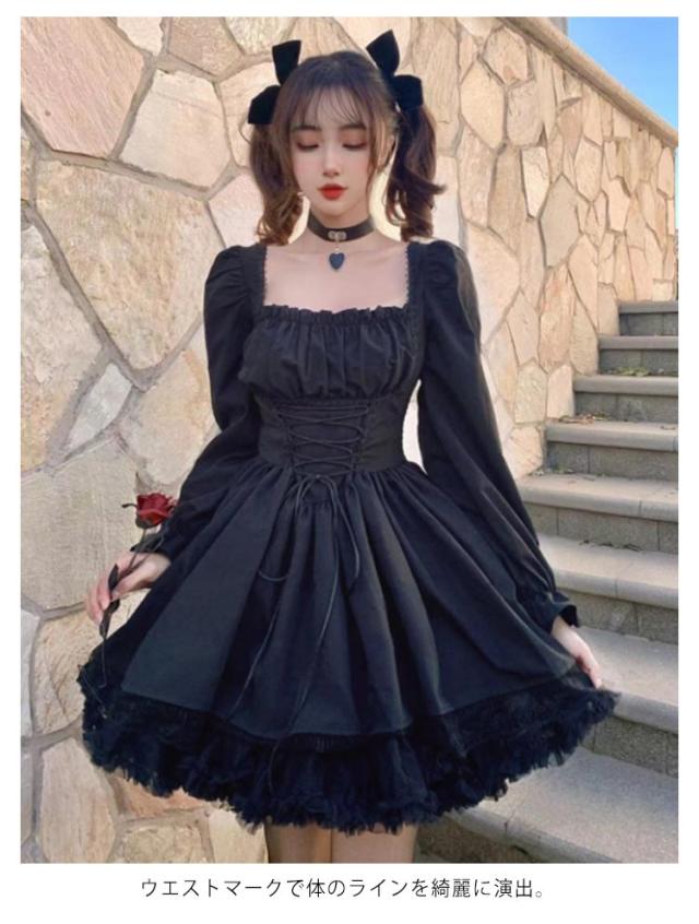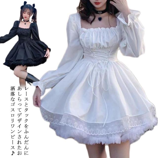 長袖 ロリータ ワンピース ゴシック 春秋 ドレス 薄手 コスプレ衣装 女子高校生 中学生 パニエなし ミディアム丈 着痩せ ワンピ 大人 可愛い スクール 学園祭 発表会 卒業式 仮装 コスプレ コスチューム 文化祭