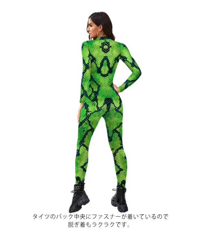 ハロウィン コスプレ 大人 全身タイツ 衣装 コスチューム ヘビ ヘビ柄 蛇 へび 服 変装 仮装 コスプレ 3D プリント 女性 レディース プレイスーツ