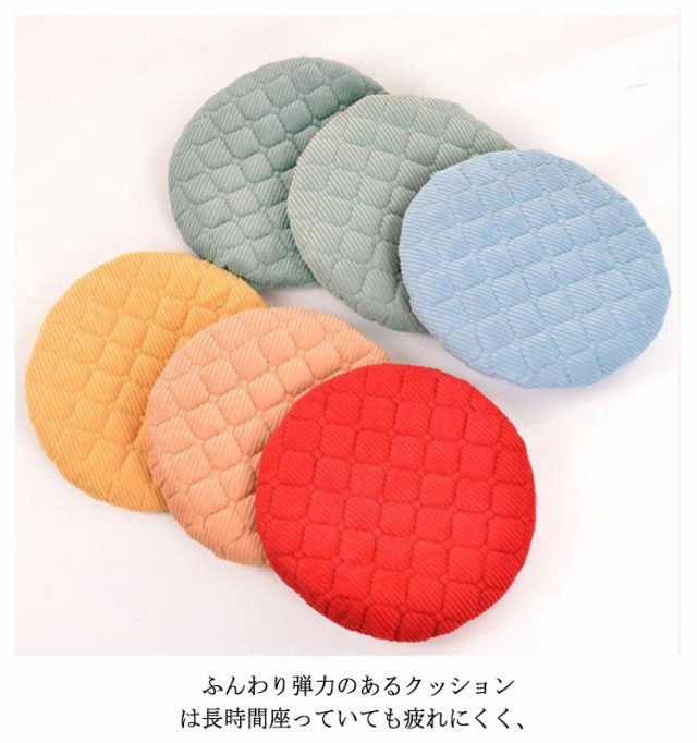 | 裏面には全周ゴムが入っており、着脱しやすくぴったりフィットします。 座面にかぶせるだけの簡単取りつけ! ふんわり弾力のあるクッションは長時間座っていても疲れにくく、 一度使うとやみつきになるような快適な座り心地。 気軽にイスのイメージチェンジが出来て、模様替えをして雰囲気を変えたいなという時にもオススメです。 | |