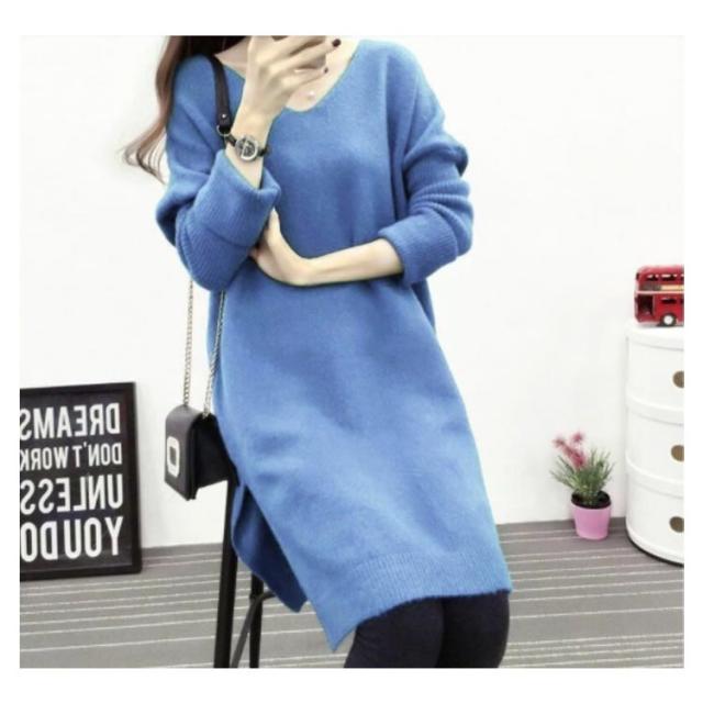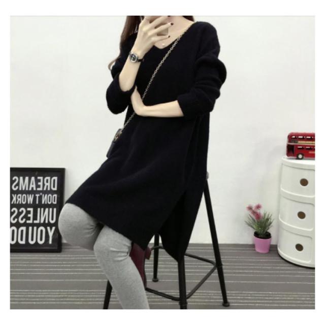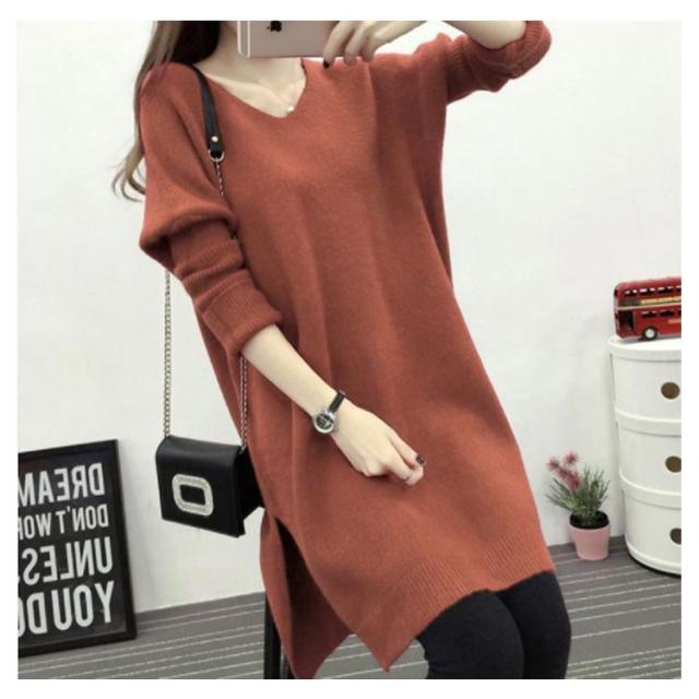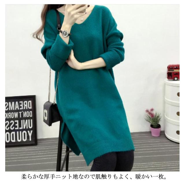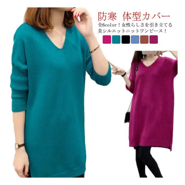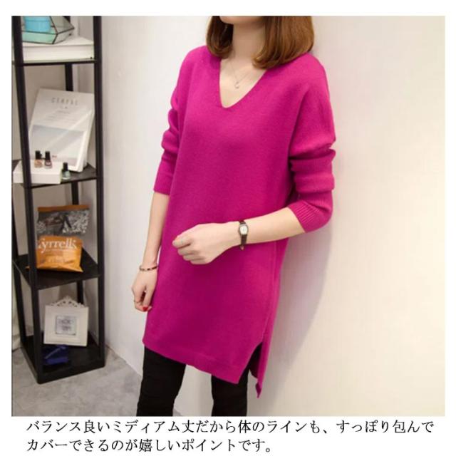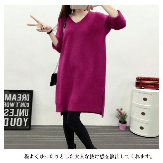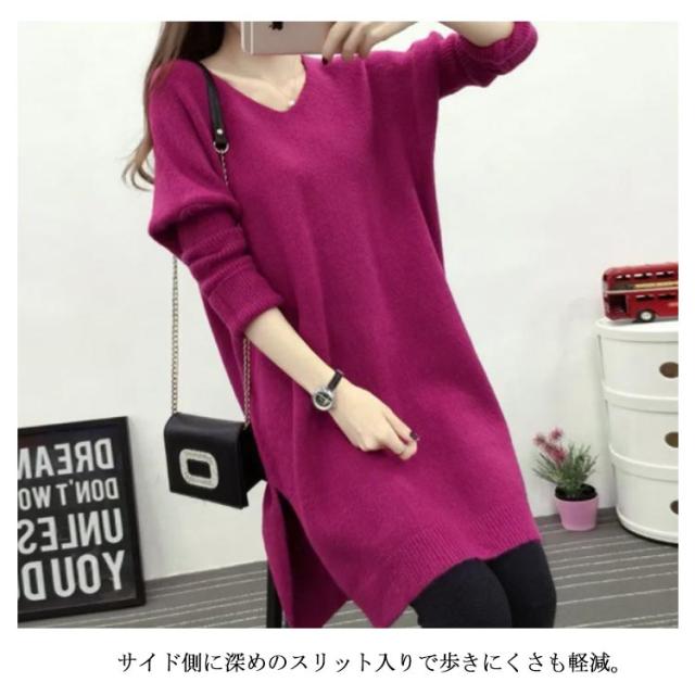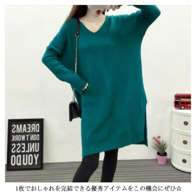 120kgまで対応!ロングニットセーター レディース セーター ニット ロング丈 サイドスリット ロングセーター Vネック ゆるニット 長袖 秋冬 防寒 体型カバー