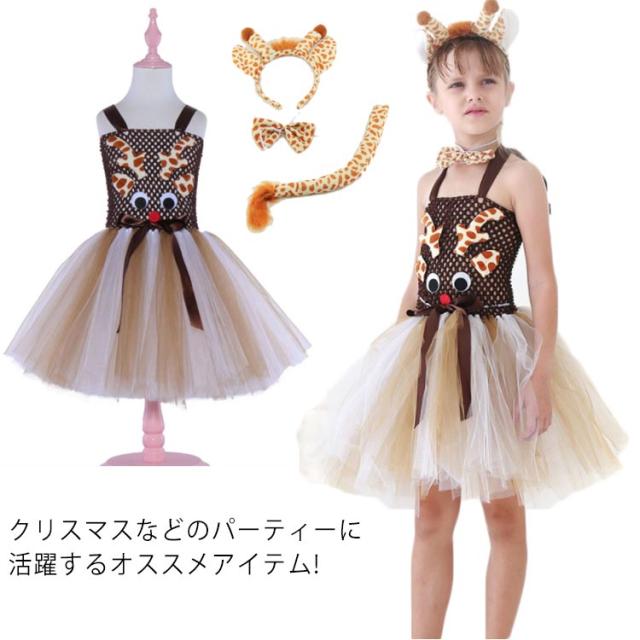 2点セット クリスマス ハロウィン 衣装 子供 コスプレ キッズ ドレス ドレス ワンピース 女の子 女児 子供ドレス トナカイ エルク コスプレ クリスマス 衣装 コスチューム 仮装 女の子 ワンピース バンド 可愛い お姫様 ドレス 撮影