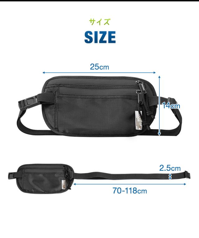 FIELDOOR 海外旅行 セキュリティポーチ 旅行 ポーチ シークレットポーチ ウエストポーチ 防犯 盗難防止 マネーベルト 貴重品入れ 財布 パスポート 航空券 クレジットカード 便利グッズ 旅行用品 トラベルグッズ 旅行グッズ 1年保証 送料無料 メール便
