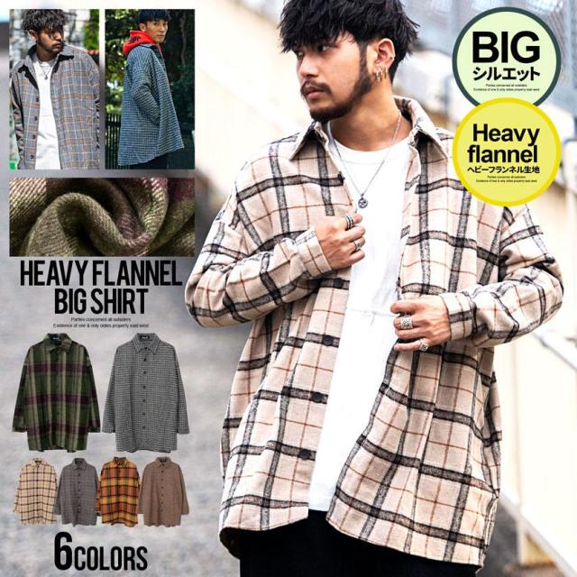 ネルシャツ メンズ チェックシャツ シャツジャケット 大きいサイズ ビッグシルエット オーバーサイズ 長袖シャツ ヘビーウエイト ヘヴィウエイト ブラック ベージュ グレー グリーン 黒 CavariA キャバリア ブランド 即日発送 [CADR22-08]