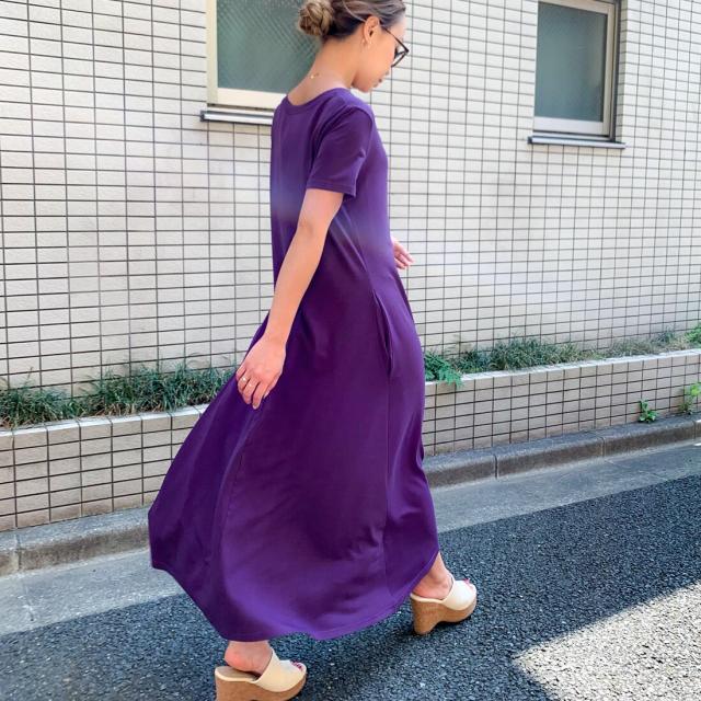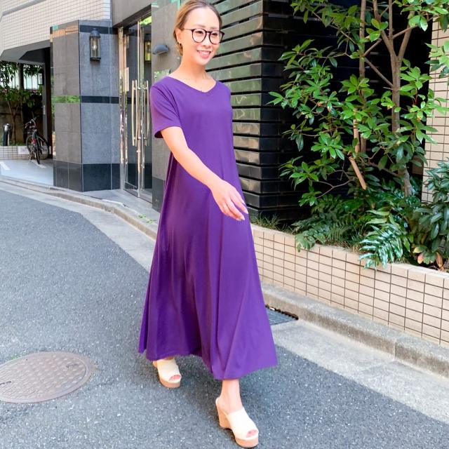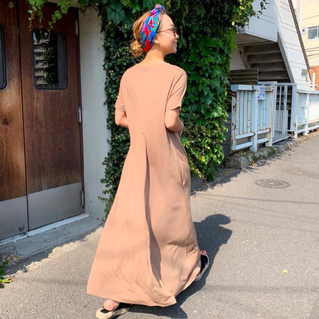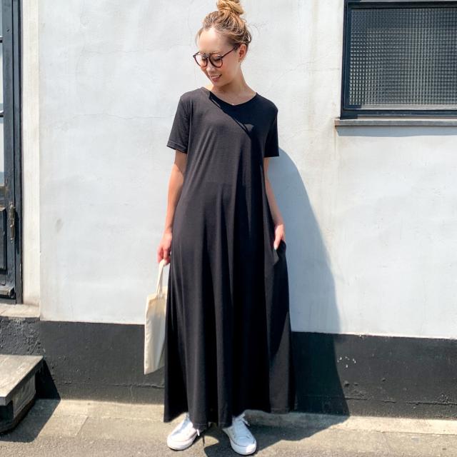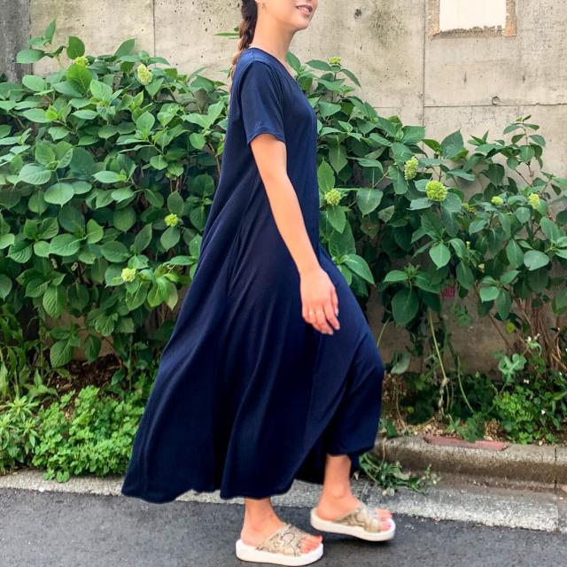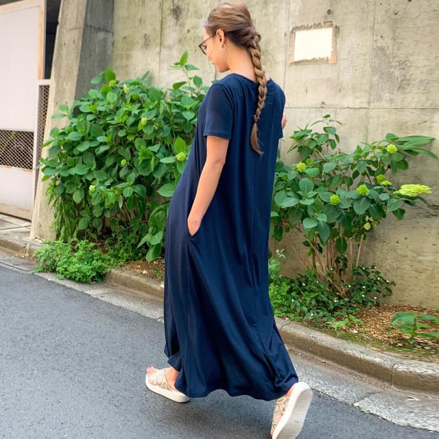 Aラインゆったり半袖マキシ丈ワンピース