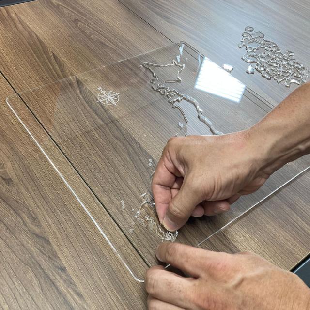 この商品は弊社で作られており、アクリルの透明感と彫刻が美しいパズルとなっております。