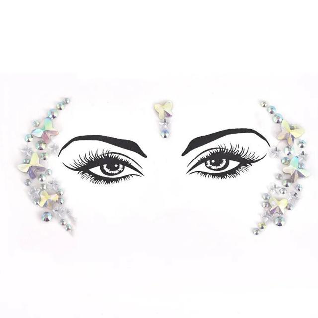 フェイス用(目元・アイブロー用) ジェムボディステッカー 1シート 貼るアクセサリー クリスタル ラインストーン レディース ポールダンサー 女の人 セクシー 社交ダンス 踊り子 眉 顔面 頬 男性 女性 彼氏 彼女 人気 虹色 レインボー 蝶々 星 スター バタフライ