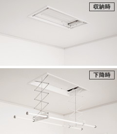 ◆品名:室内物干しユニット ホシ姫サマ 天井付け 竿2本・電動 埋込み ショートサイズ 壁付けスイッチタイプ