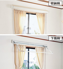 ◆品名:室内物干しユニット ホシ姫サマ 竿1本・手動 壁付け ショートサイズ フタ付