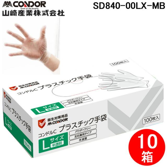 山崎産業 SD840-00LX-MB コンドルC プラスチック手袋パウダーフリー L 100枚入り (10箱セット) CONDOR (代引不可)