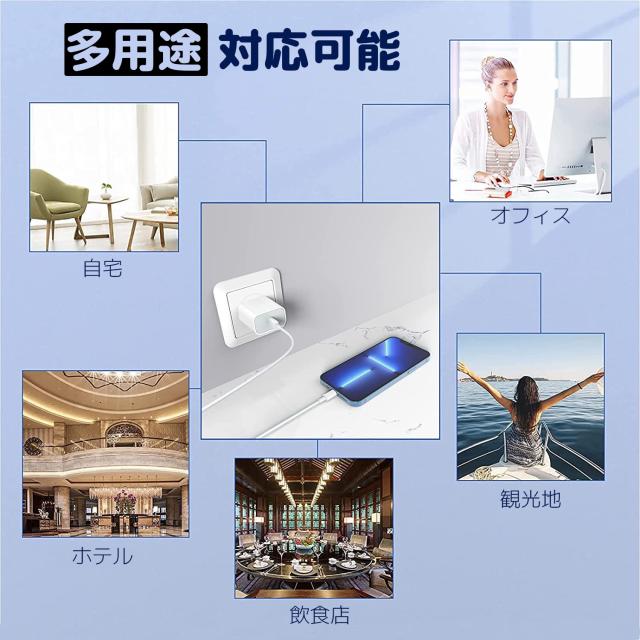 【アダプターの対応機種】新型モデルiPhone 17,iPhone Air,iPhone 16,iPhone 15,iPhone 14,iPhone 13,iPhone12/11/11 Pro / 11 Pro Max,iPhone XS XR X 8 Plus,iPad Pro 2018,iPad Air 3,iPad Mini(2019),Xperia XZ3 / Xperia 1 / Xperia L3,Galaxy S10 S9 S8 Plus,Xperia XZ2 / XZ1などの携帯、タブレットへの急速充電に対応します。しかも、Gopro Hero 6、Kindle電子辞書などにも適用します。