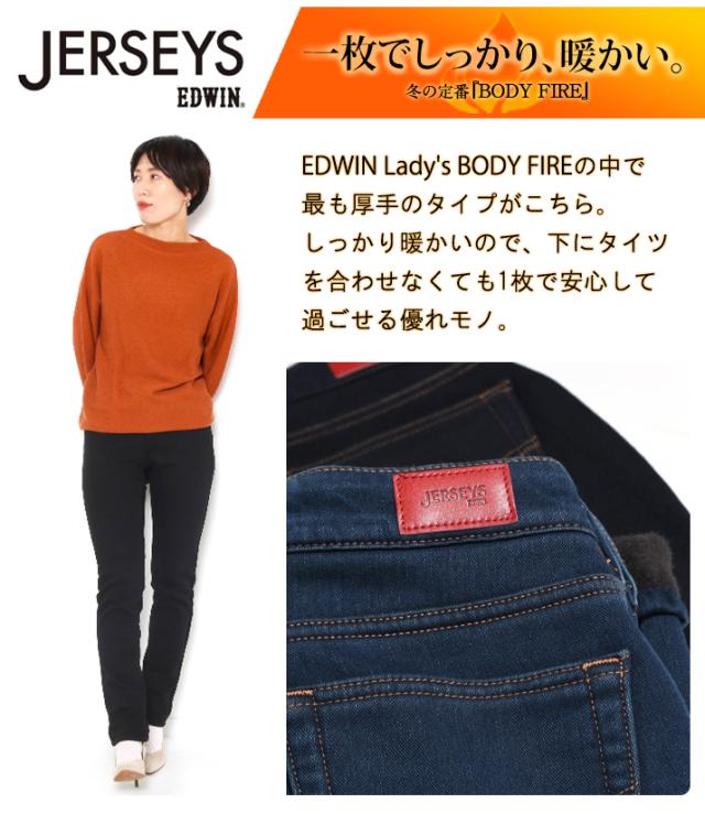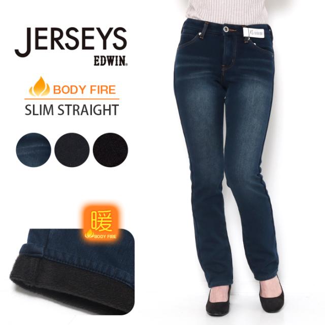 EDWIN エドウィン ジャージーズ暖 レディース スリムストレート ボディファイア JWH02W あったかパンツ 冬用 暖パン 裏起毛 デニム パンツ ラク ストレッチ きれいめ 伸びる 散歩 運動 カジュアル 厚手 防寒 きれい 暖かい 黒 ジーンズ プレゼント ギフト
