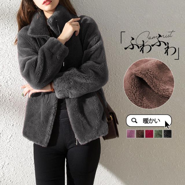 ボアジャケット フリース モコモコ 暖かい アウター 防寒 フリース 可愛い きれい ブルゾン ゆったり 上品 洋服 カジュアル シンプル 大きいサイズ フェミニン 厚手 女性らしい リラックス フリースジャケット レディース ジャケット 冬 ゆったり ジャンパー