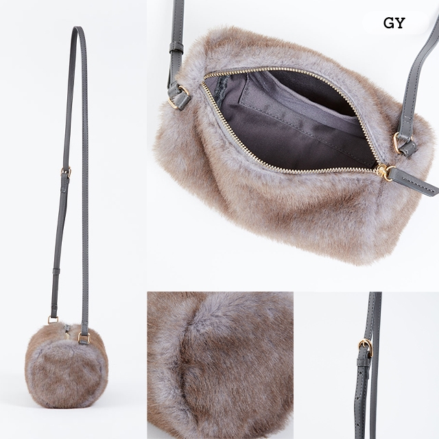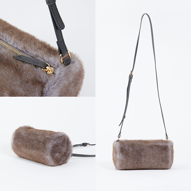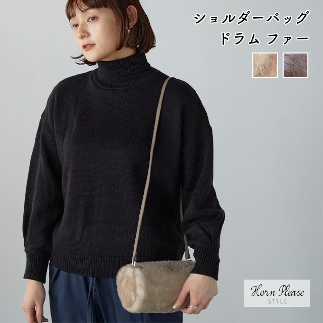 【Horn Please STYLE】ショルダーバッグ ドラム ファー 107951 ベージュ グレー【鞄 カバン バッグ ファッション 雑貨 レディース ファッション ホワイトデー 母の日 クリスマス Xmas】
