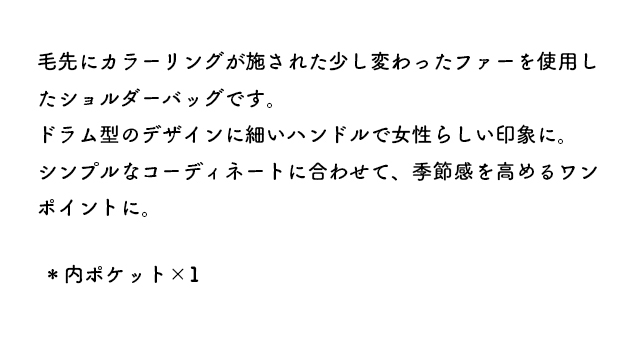 毛先にカラーリングが施された少し変わったファーを使用したショルダーバッグです。