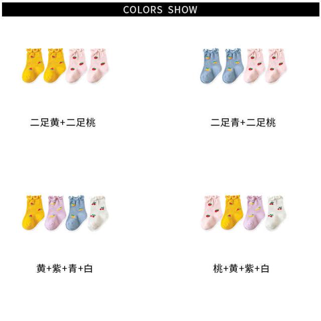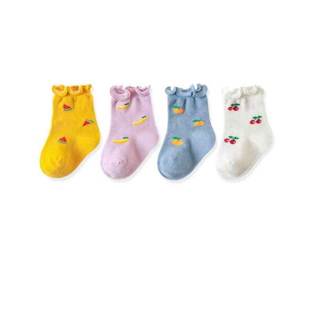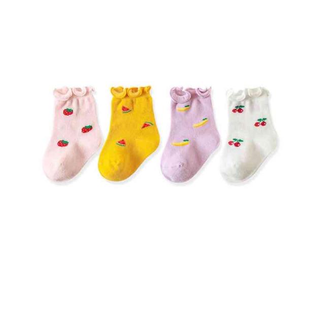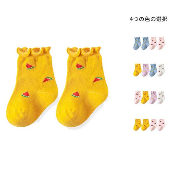 靴下 キッズ 春 秋 冬 4足セット 女の子 子供 クルーソックス フリル くるぶし ジュニア ソックス 無地 おしゃれ 韓国 子供服 果物靴下 かわいい フリル靴下 フリルソックス シンプル カジュアル おしゃれ 送料無料