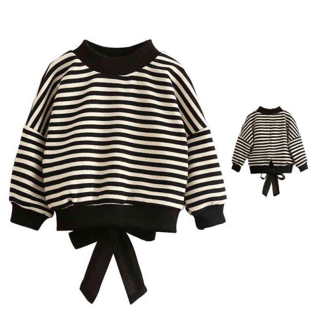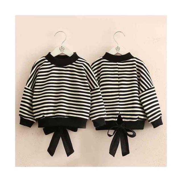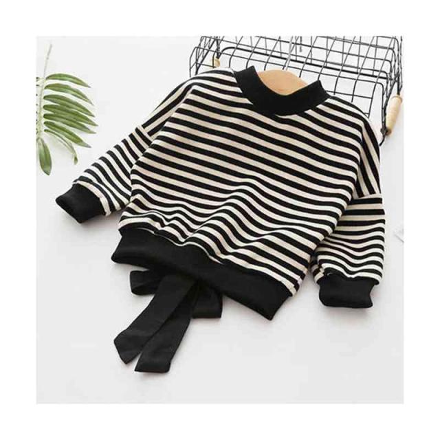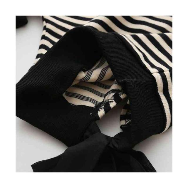 リボンブラウス キッズ 女の子 リボン付き ボーダーブラウス おしゃれブラウス 長袖 女の子 春秋 丸襟 ショートブラウス おしゃれブラウス シンプル カジュアル おしゃれ 送料無料 おでかけ 子供服