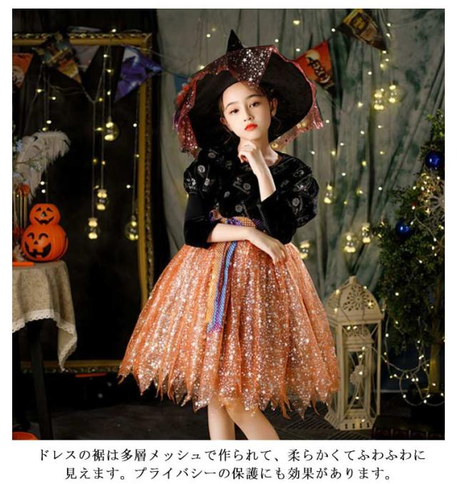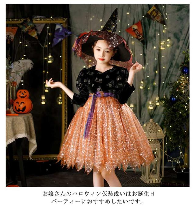 ハロウィン コスプレ 衣装 子供 仮装 魔女 女の子 ドレス ワンピース 変身 キッズ お姫様 プリンセス 帽子 キラキラ 子ども 可愛い 簡単 パーティー イベント 演出服 コスチューム 魔法使い 送料無料