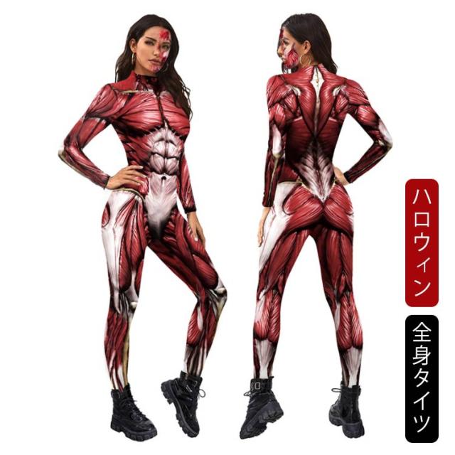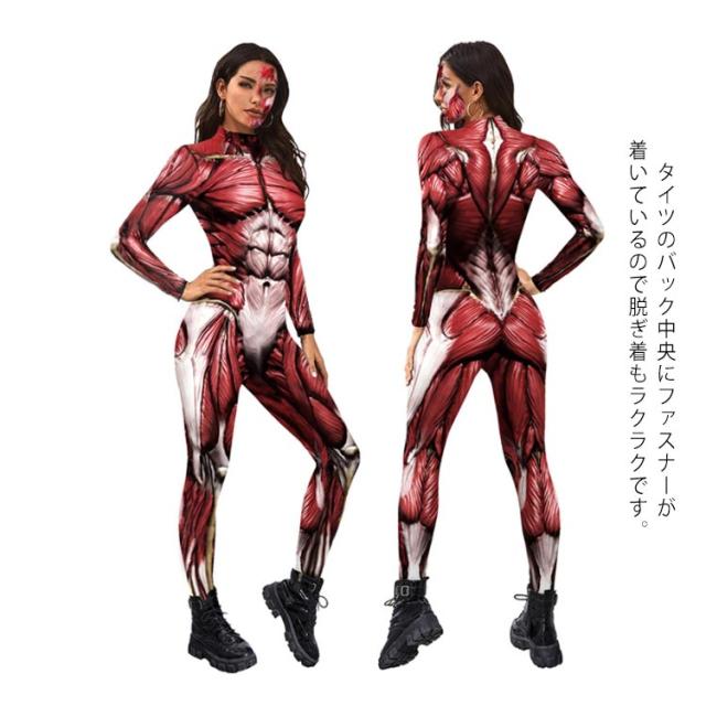 ハロウィン コスプレ 大人 全身タイツ 衣装 コスチューム 筋肉 人体模型 人体 模型 筋肉模型 医学模型 変装 仮装 コスプレ 女性 レディース