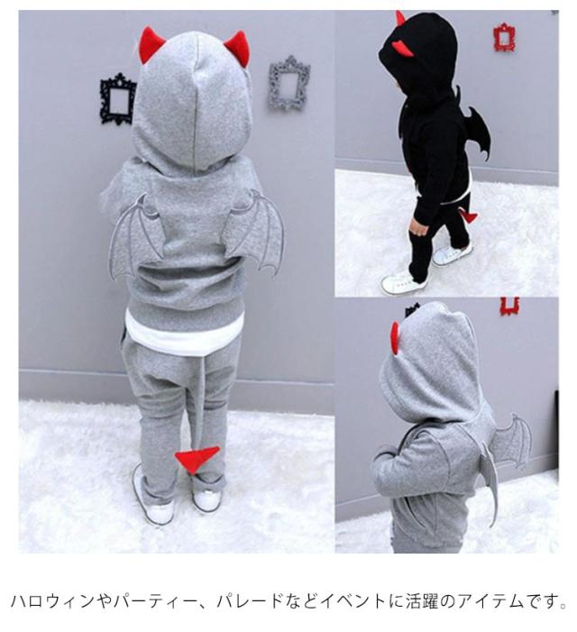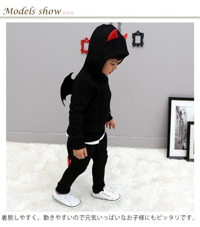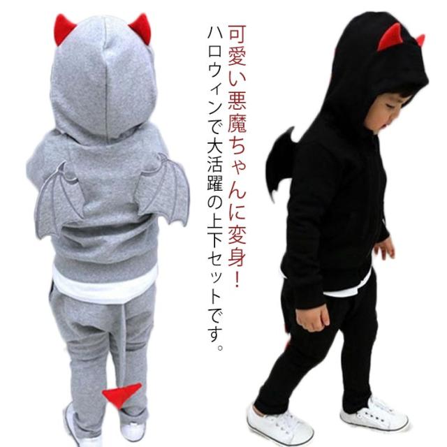 ハロウィン コスプレ 子供服 男の子 女の子 長袖 キッズ デビル 悪魔 仮装 衣装 可愛い フード付き 上下セット イベント パーカー スウェット 演劇 舞台 学園祭 文化祭 コスチューム 送料無料