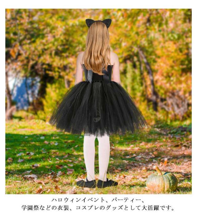 子供 コスプレ 衣装 黒猫 コスチューム チュチュワンピース ハロウィン衣装 仮装 ネコ耳カチューシャしっぽ 女の子 学園祭 舞台 キッズ 出し物 スパンコール チュチュスカート