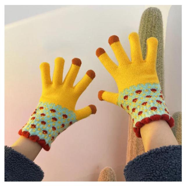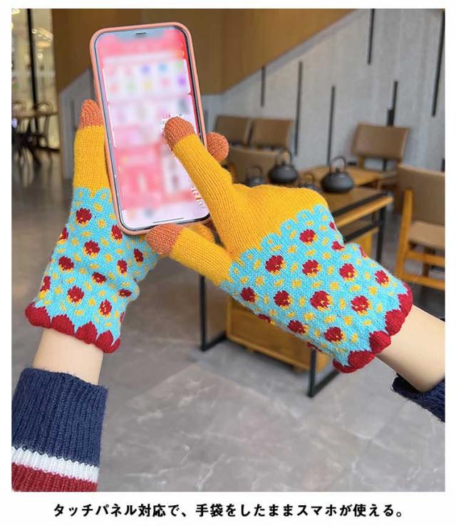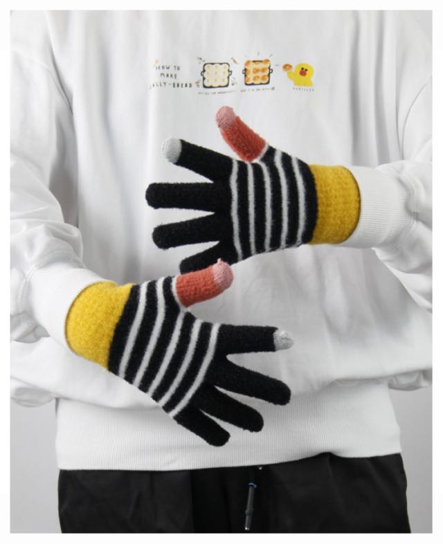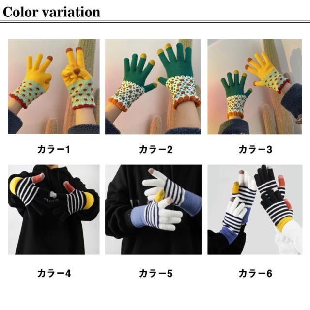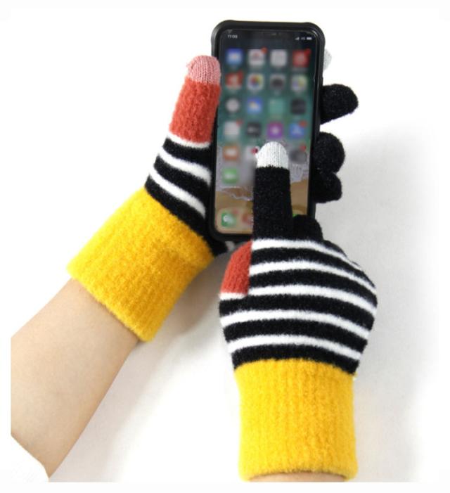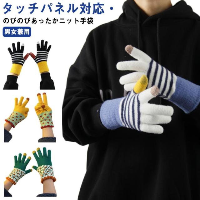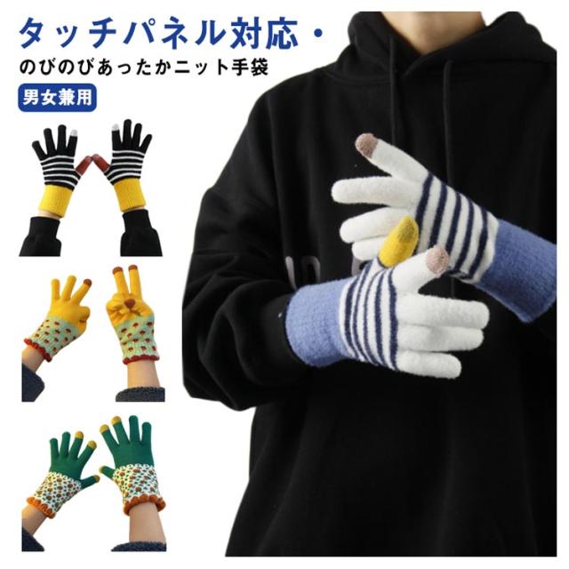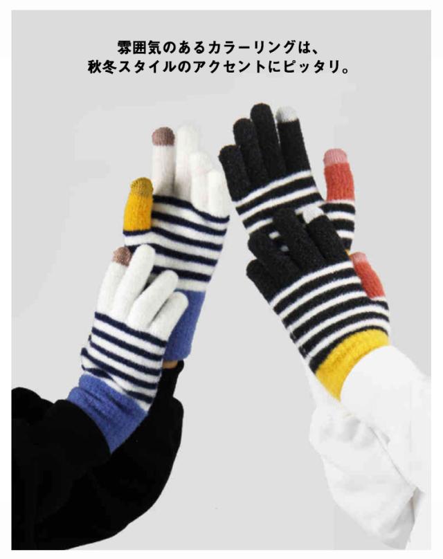 送料無料 手袋 レディース ボーダー柄 裏起毛 厚手 ニット 防寒 防風 スマホ対応 冬用 あったか ユニセックス 男女兼用 ニット手ぶくろ 暖かい グローブ 五本指 タッチパネル スマホ手袋 保温性抜群 寒さ対策 通勤 自転車 アウトドア