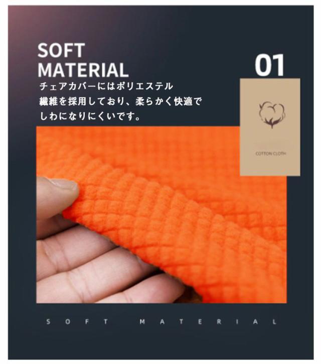 | 伸縮素材:柔らかな肌触りと、ストレッチ性に優れた素材を使ったカバー、ぐーんと伸びるので取り付けも取り外しも簡単です。 耐久性:チェアカバーにはポリエステル繊維を採用しており、柔らかく快適でしわになりにくいです。 伸縮性が優れ、取り付けや取り外しが簡単で、変形しにくいです。ほつれなく、長くご愛用頂けます。 洗える:汚れたら洗濯機で洗えるので、小さいお子様やペットのいるご家庭でも安心してご使用いただけます。ネットに入れれば、洗濯機で丸洗いできるのも使いやすさのポイント。 | |