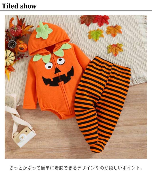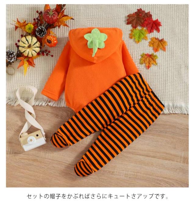 ハロウィン コスプレ 衣装 2点セット ベビー 仮装 かぼちゃ パンプキン ロンパース スモック フリース 可愛い 女の子 男の子 キッズ おもしろ 赤ちゃん ベビー コスプレ子供 ハロウィンコスチューム