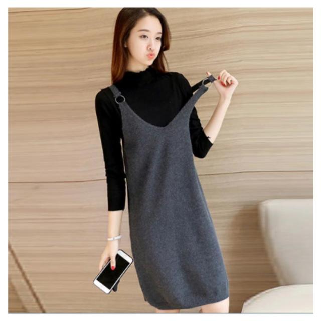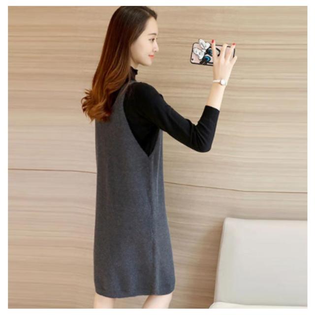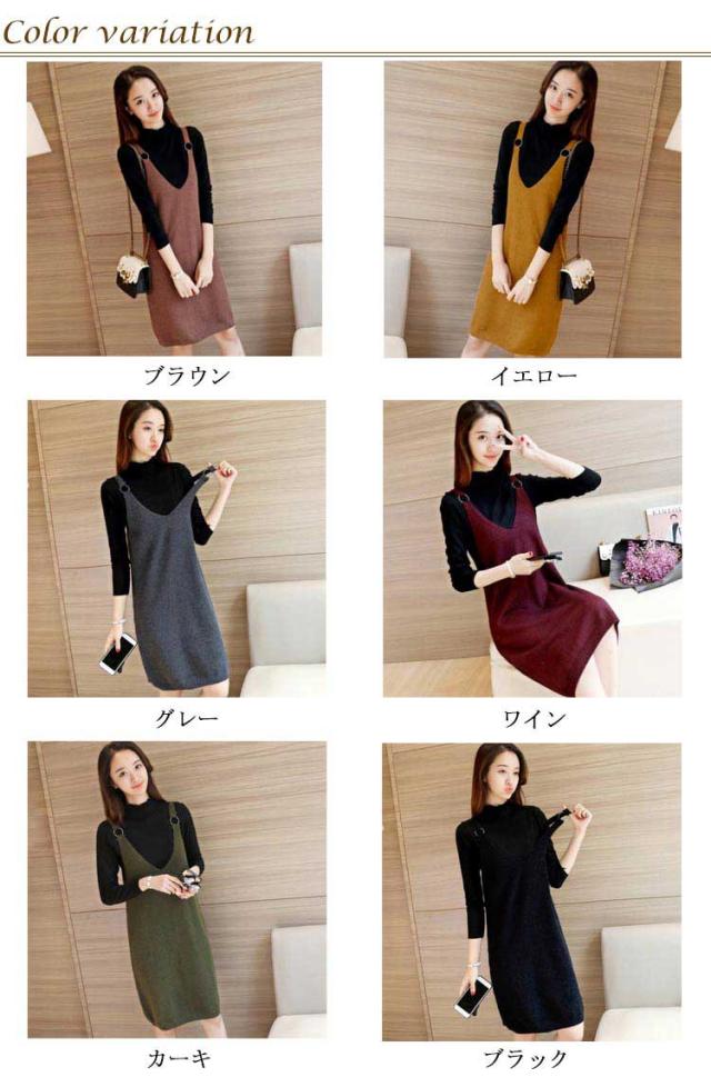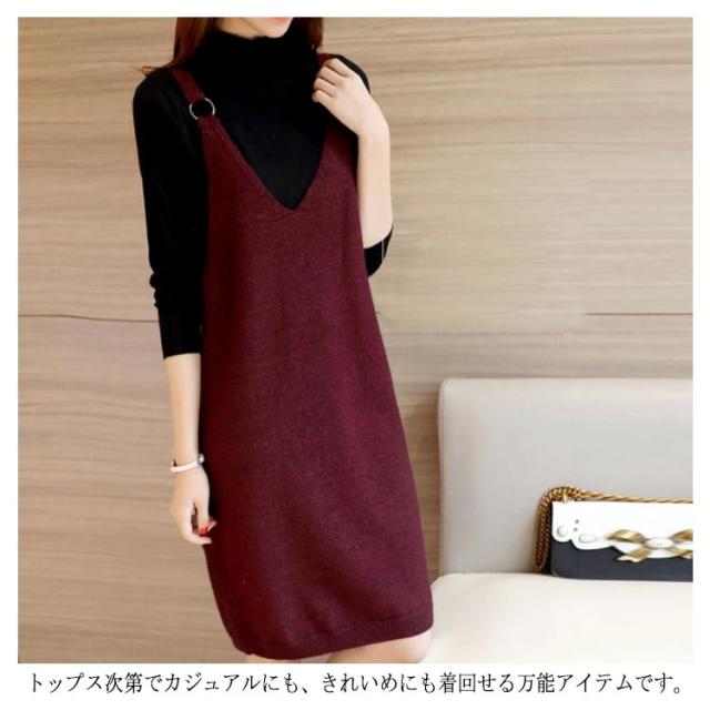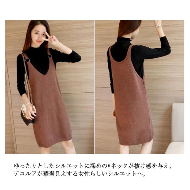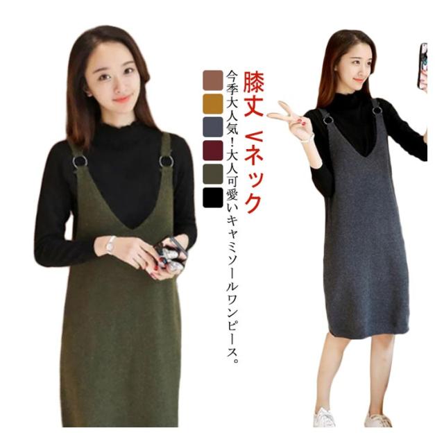 サロペットワンピース ニットワンピース キャミソールワンピース 膝丈 ワンピース ジャンパースカート サロペット Vネック ニットワンピ ゆったり 可愛い 秋冬