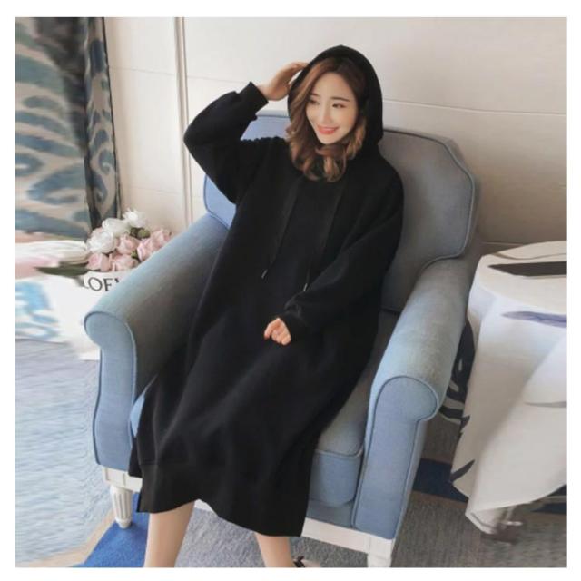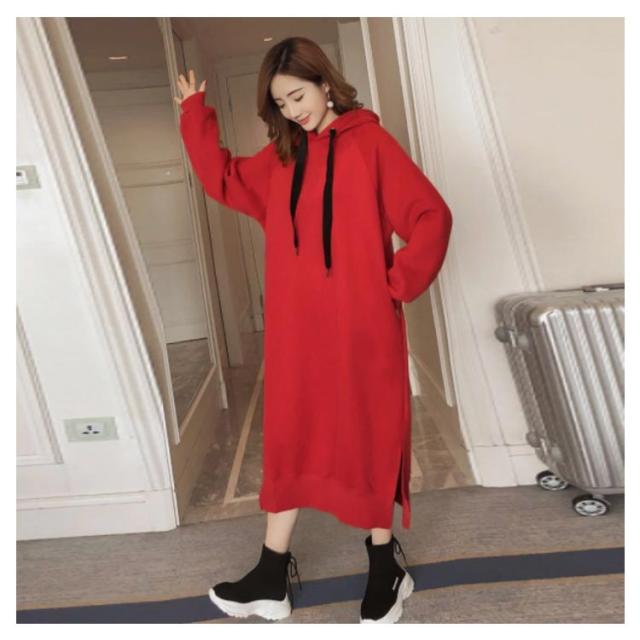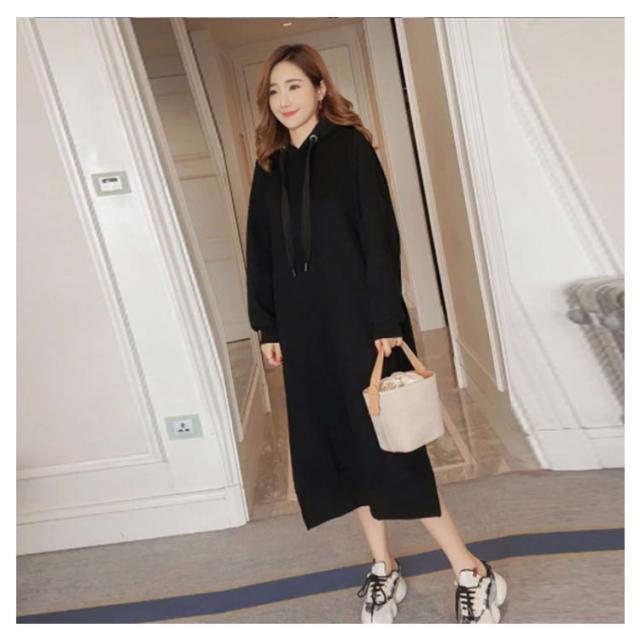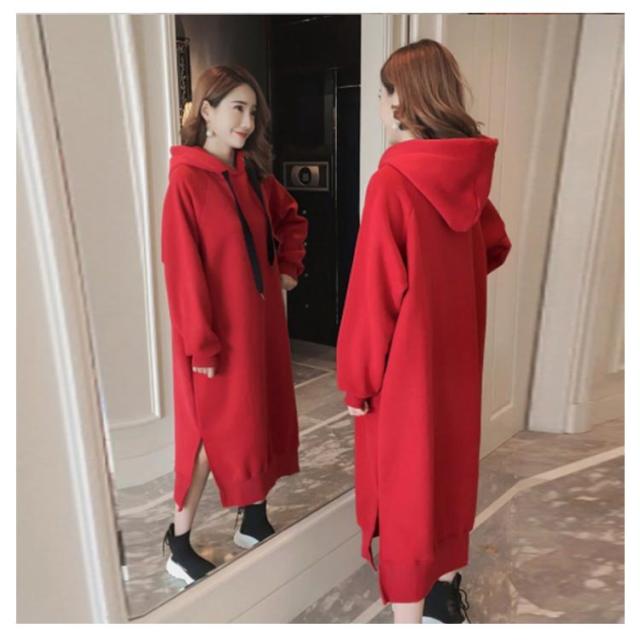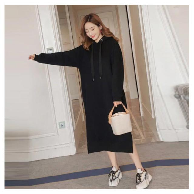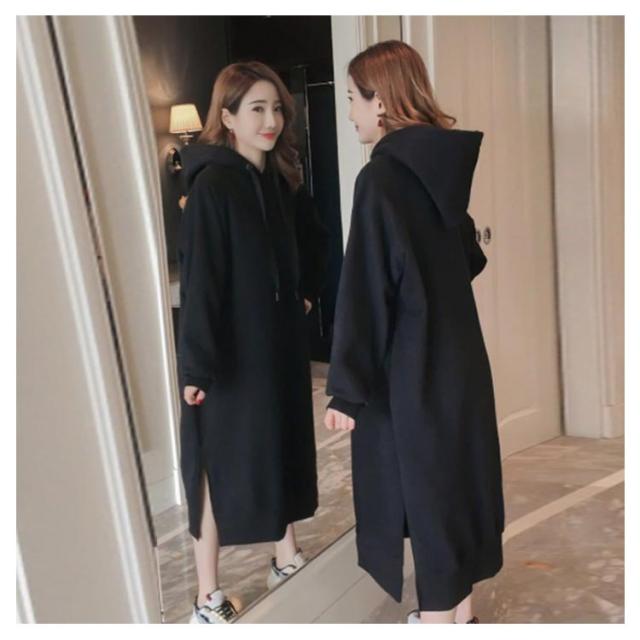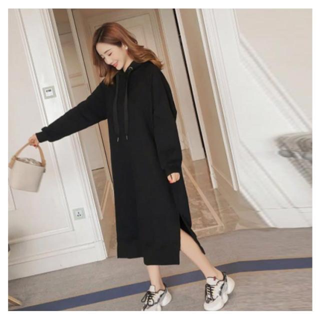 裏起毛であったかい!ロングパーカーワンピース ワンピース パーカーワンピース マキシワンピース フード付き パーカワンピ スリット ロングワンピース 裏起毛 ゆったり 暖かい 秋冬 体型カバー
