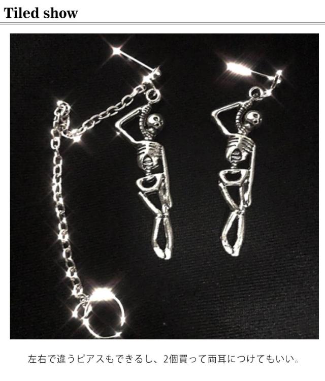 2個入り 首吊りドクロピアス ガイコツピアス 揺れるピアス アメリカンピアス ボディピアス メンズ レディース チェーン ピアス ファッションピアス シングルピアス 骸骨 髑髏 おもしろ 面白い オモシロ ユニーク 個性