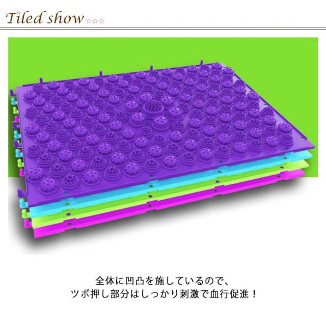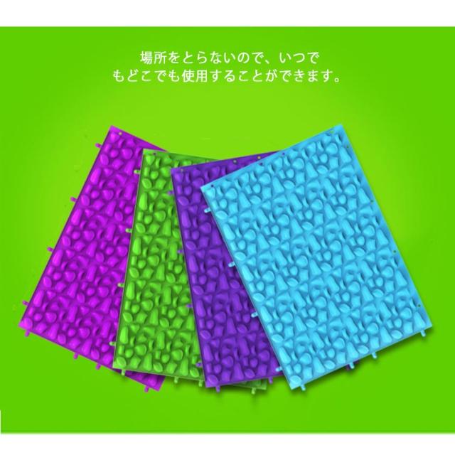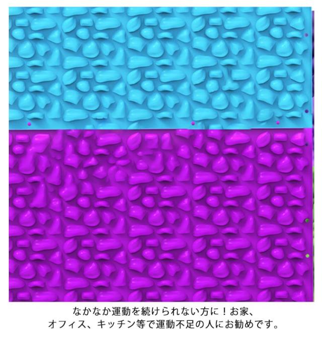 | 足裏の筋肉をほぐすことができる足ツボマッサージマットです。 全体に凹凸を施しているので、ツボ押し部分はしっかり刺激で血行促進! 場所をとらないので、いつでもどこでも使用することができます。 自由に組み合わせて、マットの面積を広げてお使いいただくこともできます。 なかなか運動を続けられない方に!お家、オフィス、キッチン等で運動不足の人にお勧めです。 | |