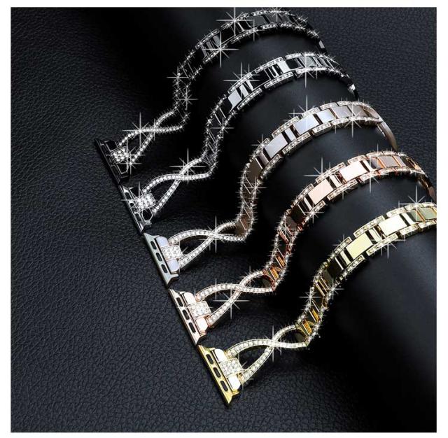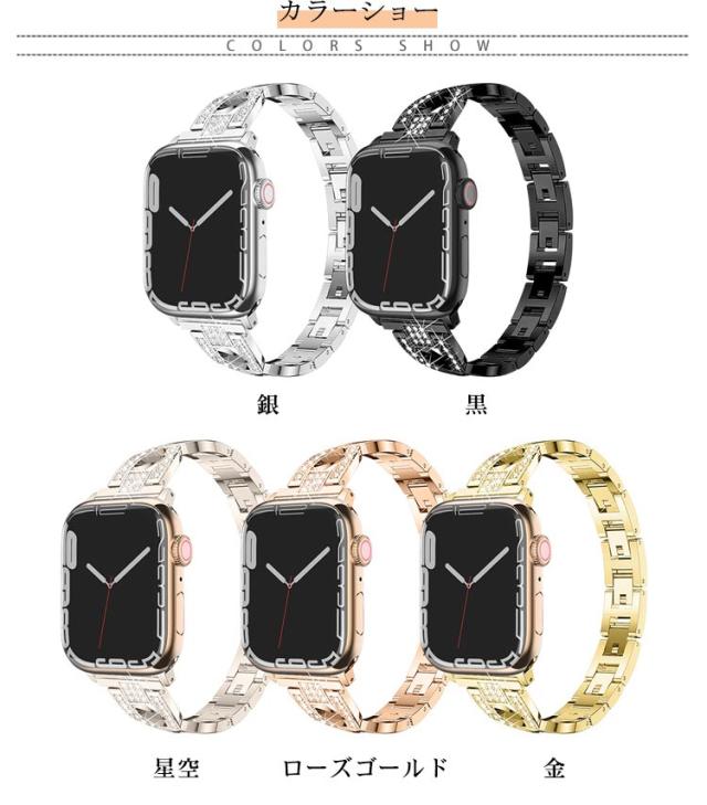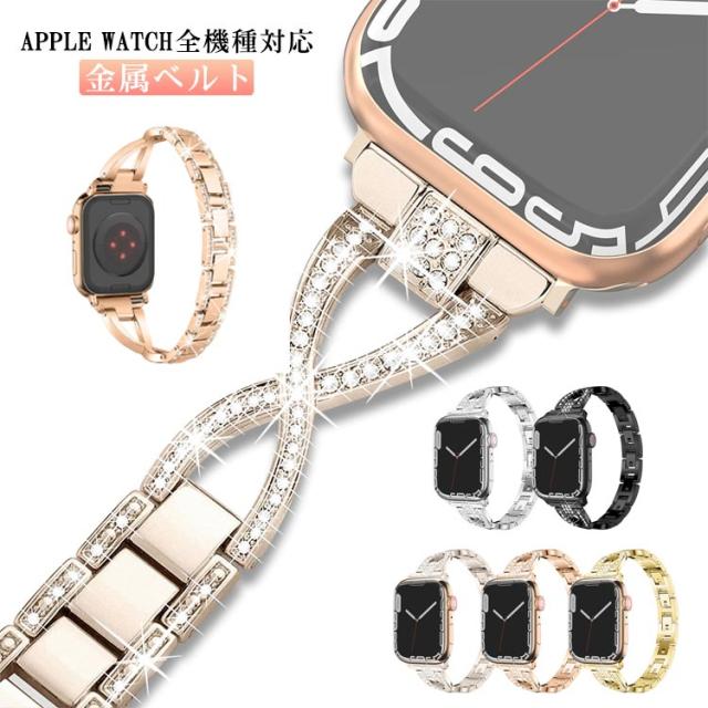 メタル アップルウォッチ バンド 金属ベルト ビジネス Apple Watch ベルト バンド 交換用ベルト ラインストーン キラキラ チェーン ベルト 38mm 40mm 41mm 42mm 44mm 45mm 交換ベルト 交換バンド 交換用バンド iWatch用 バンド Apple Watch Series 8 7 6 5 4 SE 送料無料