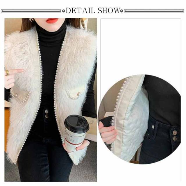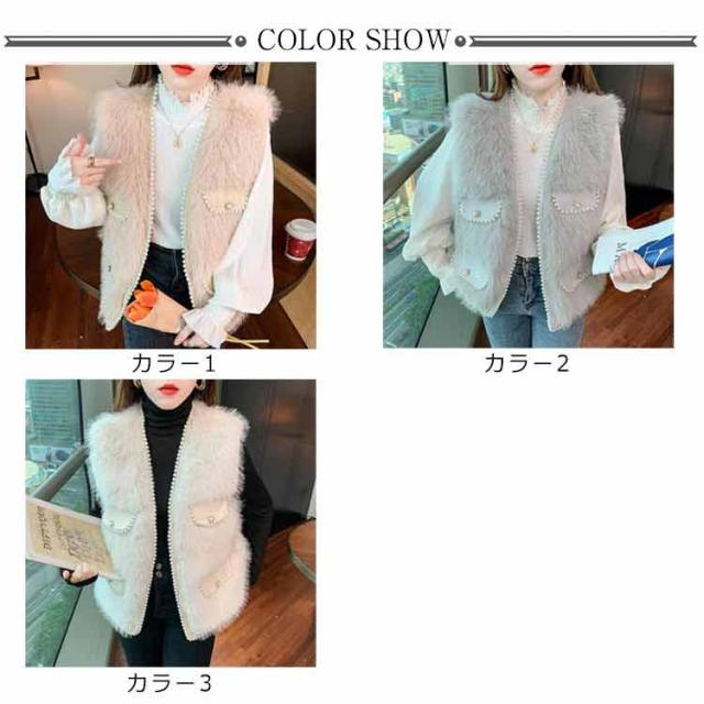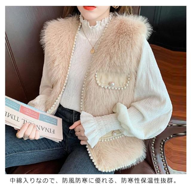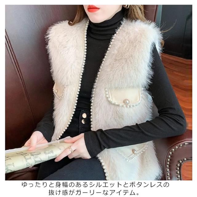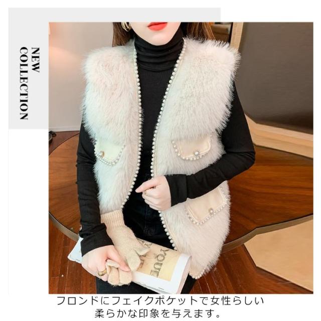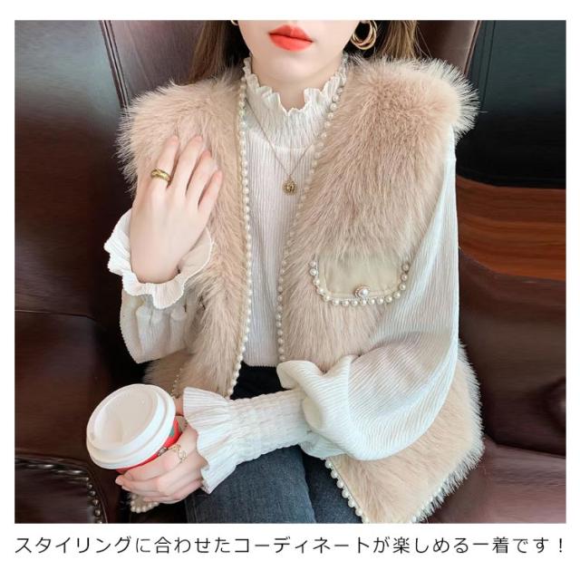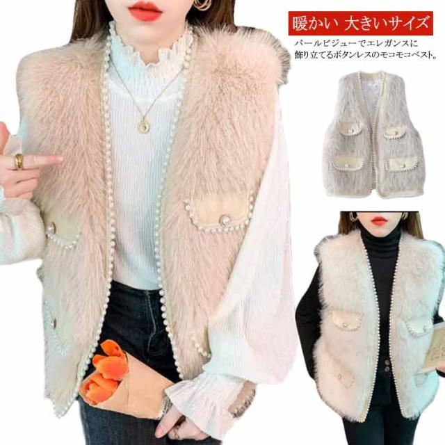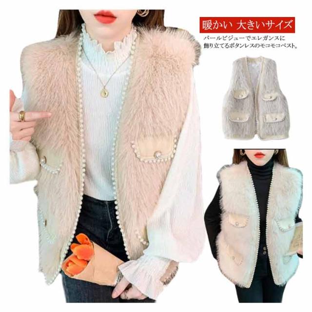 パールビジュー レディースベスト ファーベスト モコモコ 秋冬 アウター トップス ファーコート おしゃれ ボリューム カジュアル かわいい 可愛い 暖かい フェミニン 大きいサイズ S M L XL 2XL