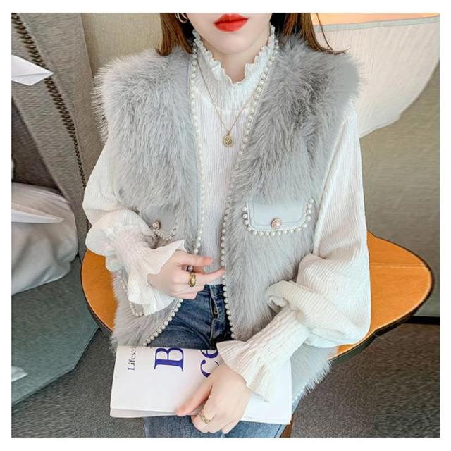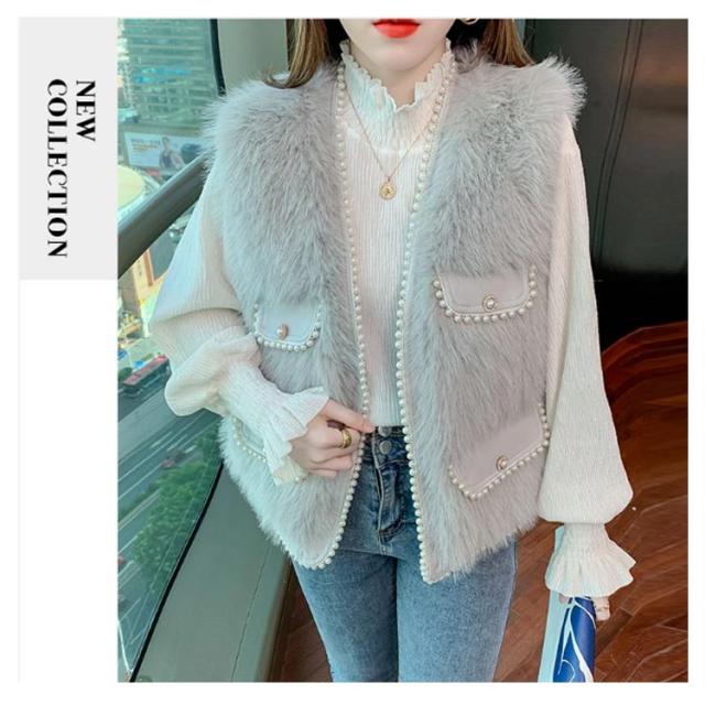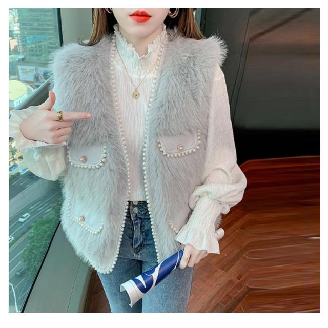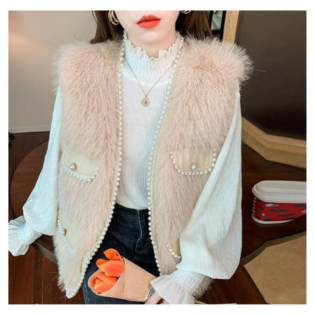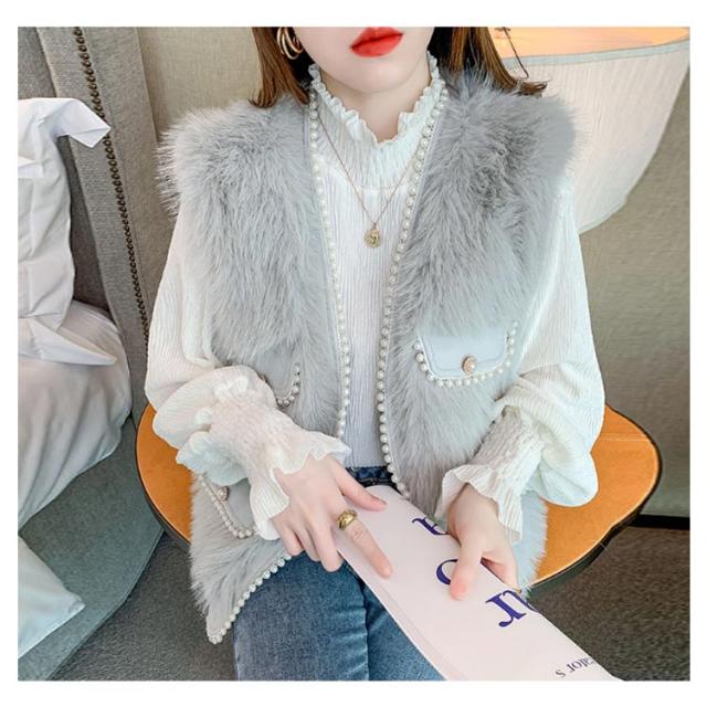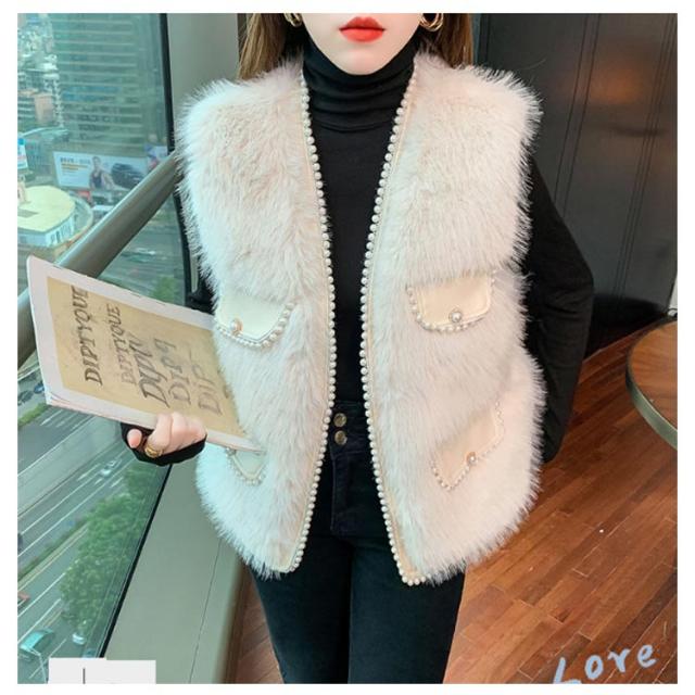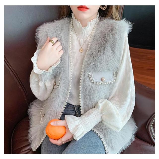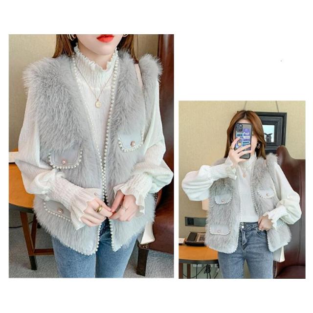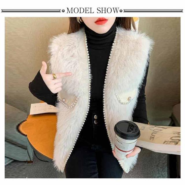 パールビジュー レディースベスト ファーベスト モコモコ 秋冬 アウター トップス ファーコート おしゃれ ボリューム カジュアル かわいい 可愛い 暖かい フェミニン 大きいサイズ S M L XL 2XL