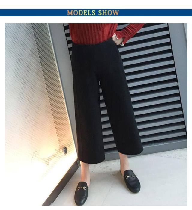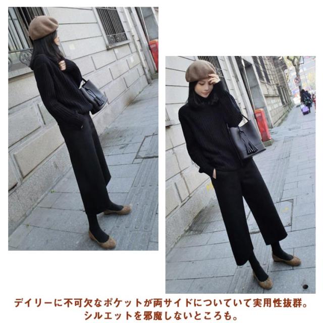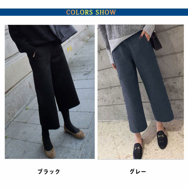 ウール混 ワイドパンツ 厚手 定番 9分丈 ボトムス エストゴム レディース 秋冬 ウールライク ガウチョ ハイウエスト パンツ アンクルパンツ クロップド丈 体型カバー 暖かい 無地 オフィス 楽ちん あったか 仕事 長ズボン 大きいサイズ