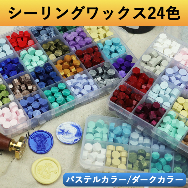 シーリングワックス シーリングスタンプ用 蝋封 ワックス 24色 シーリングシール セット 粒 ビーズ カラー キット 炉セット