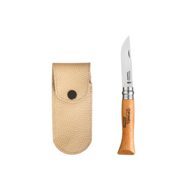 OPINEL オピネルナイフ カーボンスチール レザーケース セット ベージュカラー #6 7.3cm